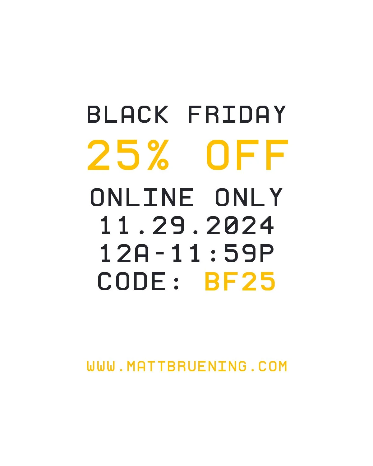 you know we dont normally do much promos but this year we wanted to try new things. Black Friday shouldn’t be complicated so we tried to simplify things and have a section dedicated to product that qualify for our BLACK FRIDAY promo. To make it easier on us we wanted to offer product that are already made and ready to ship as we gear up for market holiday pop ups which youll soon learn more about! black friday promo starts friday at 12a and ends friday night at 11:59p! MAHALO for all the support! happy holidays and happy shopping! aloha - matt